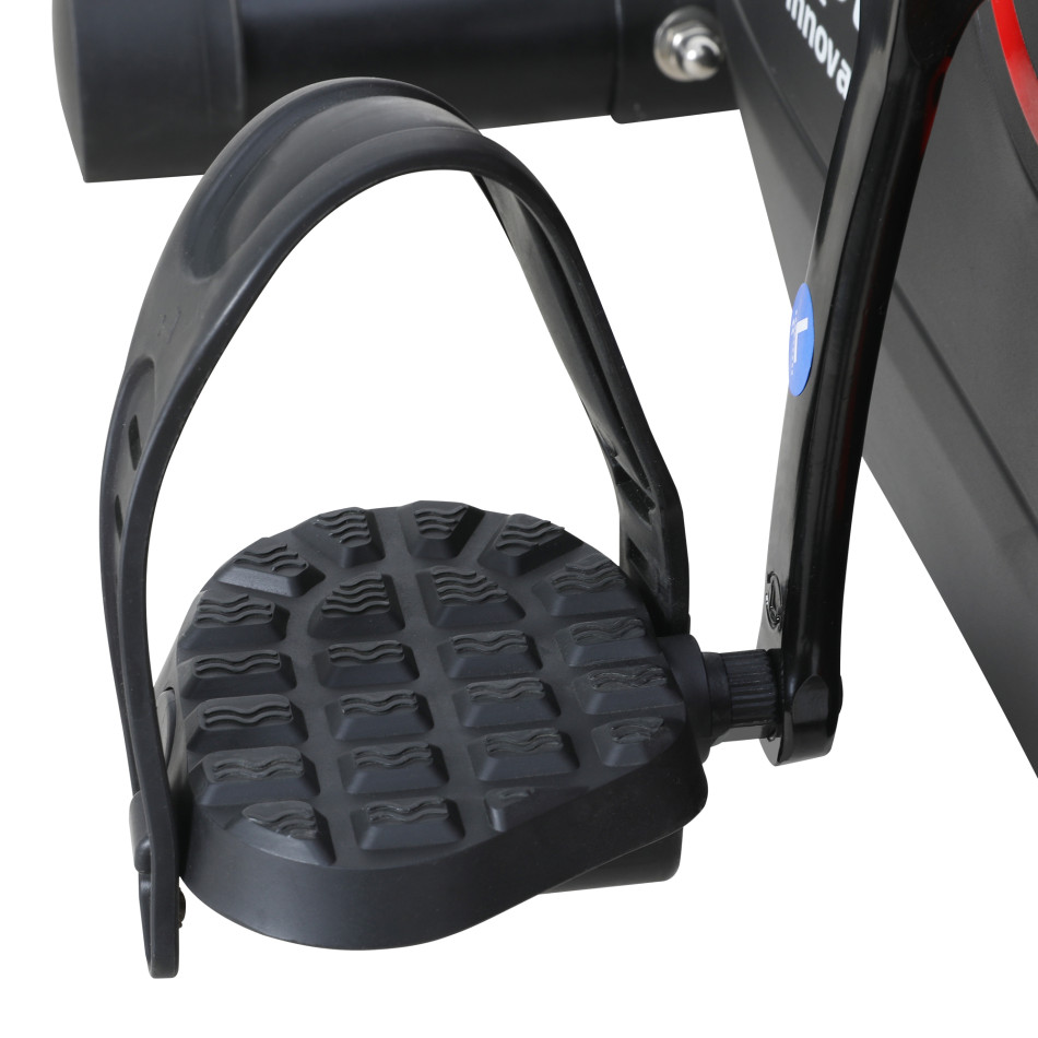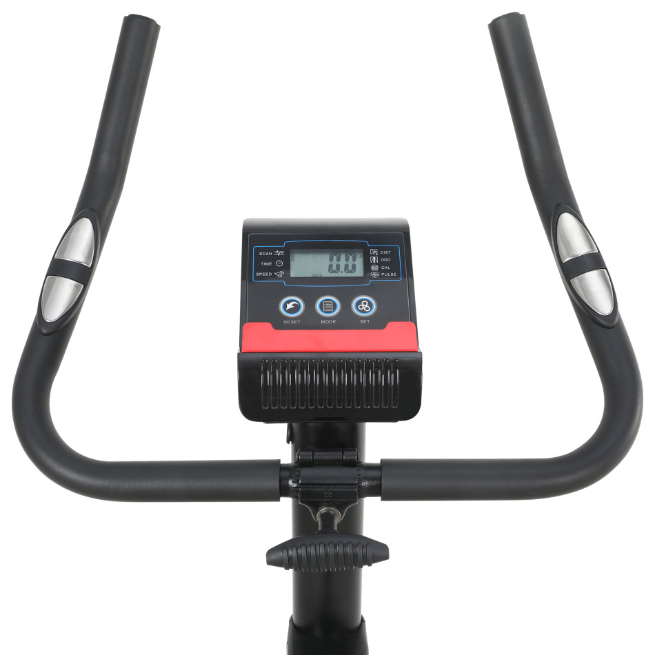 Среднегаборитный надежный велотренажер с магнитной системой нагружения. Высокая плавность хода и достаточные уровни нагрузки обеспечиваются благодаря современной приводной системе и сбалансированному маховику весом 6 кг. Комфортабельное сидение с анатомическим рельефом регулируется по вертикали и горизонтали, и вместе с возможностью регулировки руля позволяет подобрать оптимальное положение для пользователей различного роста. Рифленые антискользящие педали с прорезиненными многопозиционными ремешками обеспечивают надежное сцепление на любых скоростях педалирования. Хромированный шатун не только защищает поверхность от царапин, но и придает тренажеру большую внешнюю эффектность.